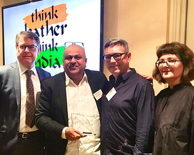 Im Rahmen der ModEurop Colour Club Conference wurde MD Sadiq vom indischen Central Leather Research Institute für 25 Jahre aktive Partnerschaft mit ModEurop geehrt. DSI Geschäftsführer Manfred Junkert dankte MD Sadiq für die langjährige, vertrauensvolle Zusammenarbeit. Die indische Lederindustrie unterstützt ModEurop mit Know-how und der Bereitstellung von Ledermustern. Auch beim diesjährigen Meeting stammten über 500 Ledermuster aus Indien. Md Sadiq, Leder- und Modefachmann aus Chennai forciert als ModEurop Botschafter den Einsatz der ModEurop Farbkarte in der indischen Schuh- und Lederwarenindustrie. In Paris wurde der 54-Jährige für sein langjähriges Engagement mit einem Pokal ausgezeichnet.