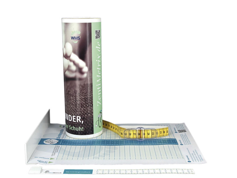 Das Mess-Set wird durch das online-Tool „zentimetrix.de“ ergänzt. Dieses Tool vereinfacht es, die Zentimeterbasis des Messgeräts in Schuhgrößen umzurechnen. Auf diese Weise wird außerdem sofort ersichtlich, wann ein Schuh zu klein und wann er zu groß ist. Hinterlegt sind die WMS-Schuhgrößen und Messrichtinien. Damit wird das Set zu einer praktischen und pfiffigen Ergänzung zum professionellen Messen der Füße mit dem WMS-Messgerät im Handel.