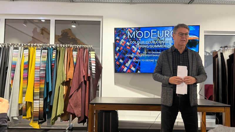 Wertvolle Impulse boten auch dieses Mal wieder die hochkarätigen Vorträge der ModEurop Creative Directors Martin Wuttke und Uta Riechers-Wuttke. Mit spannenden Highlights aus den Bereichen Fashion, Kunst, Kultur und Musik schufen die Berliner Trendanalysten die beste Voraussetzung, um die ModEurop Farbkarte für Frühjahr/Sommer 2027 zu erstellen. Dafür standen den Kreativen rund 550 Ledermuster internationaler Gerbereien (darunter u.a. aus Italien, Indien und Deutschland) sowie technische Textilien namhafter Unternehmen zur Verfügung.